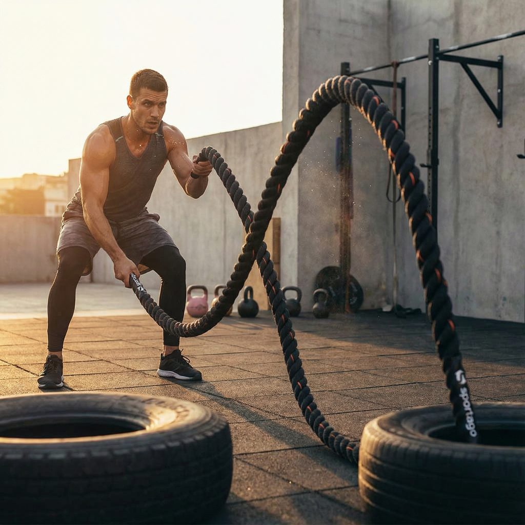 Posilňovací lano Battle Rope Sportago je skvelou cvičebný pomôckou pre rozvoj sily, výbušnosti, koordinácie a vytrvalosti. Je využiteľné pre horizontálne a vertikálne tréning.