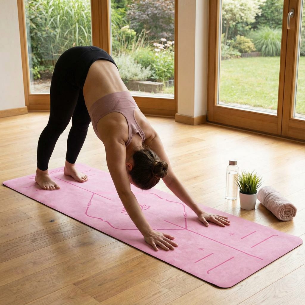 Dizajnová podložka na jogu z TPE a mikrovláka, štýlový a krásny vzhľad, protišmykový povrch na spodnej strane, komfortný semišový povrch, jednoduchá údržba.