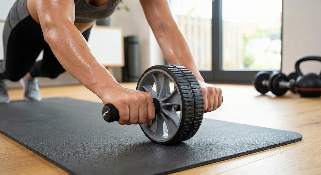 Cvičenie začínate úchopom dvoch bočných rukoväťou po stranách kolieska. Východisková poloha je v kľaku na nohách, je tiež dôležité mať počas celého rozsahu pohybu rovný chrbát. Celou svojou váhou sa oprite do kolieska a pohybom vpred po podlahe telo dostávate do vodorovnej polohy. Opačným posunom kolieska späť sa pomaly dostávate späť do východiskovej polohy.