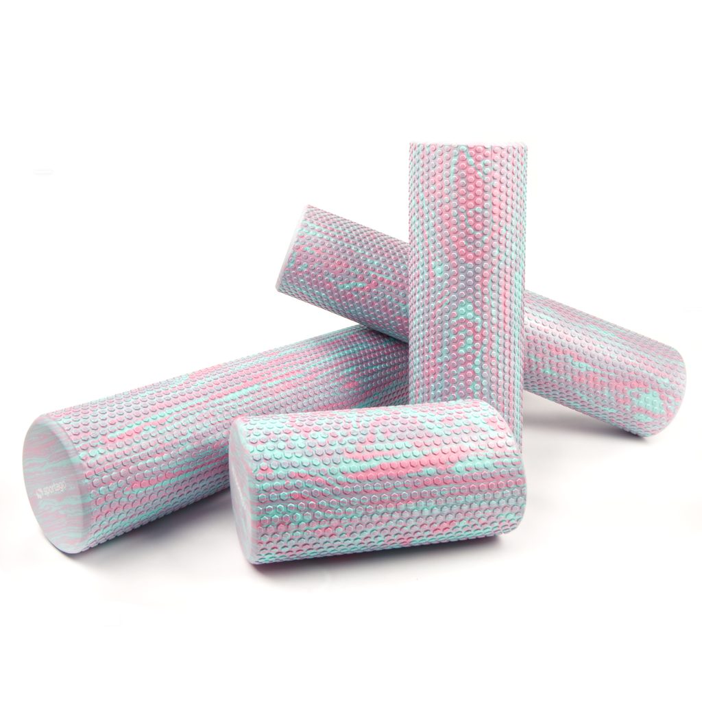 Stred valca je vyrobený z tvrdého jadra a horná časť z EVA peny, je tak zaistené bezpečné použitia valca a pritom je zachované pohodlie cvičiaceho. Jemné výstupky potom masírujú telo masážnymi výstupkami.