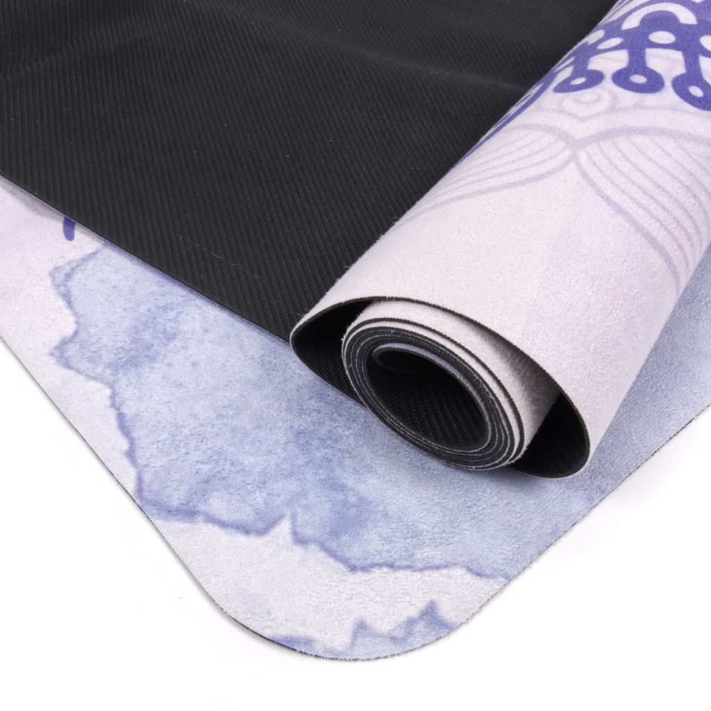 Prémiová podložka na jogu z kaučuku a semiša, štýlový a krásny vzhľad, protišmykový povrch na spodnej strane, komfortný semišový povrch, jednoduchá údržba.