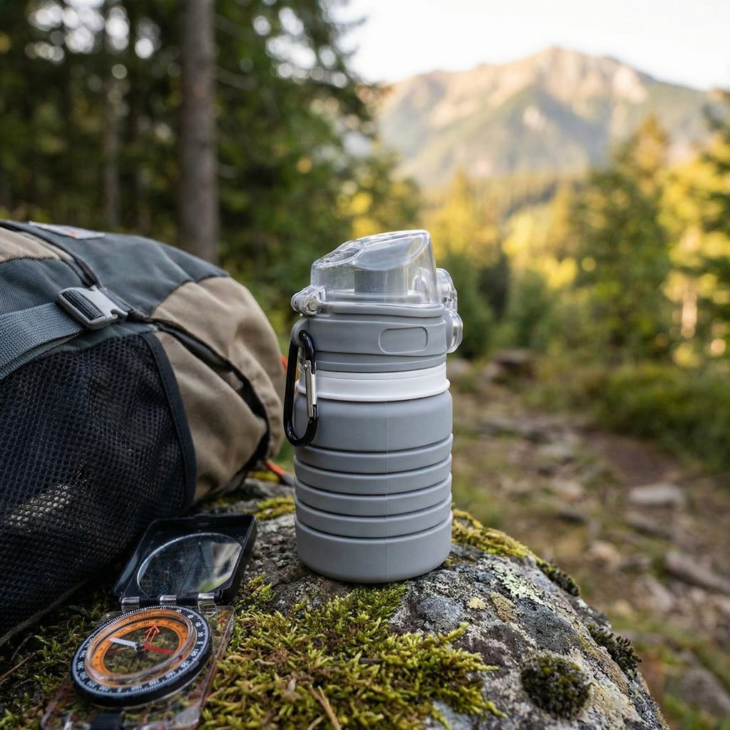 Skladacia silikónová fľaša, ktorá sa zmestí do každého batohu či tašky a môžete ju mať všade so sebou.