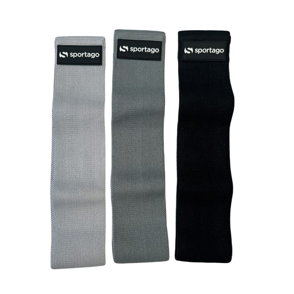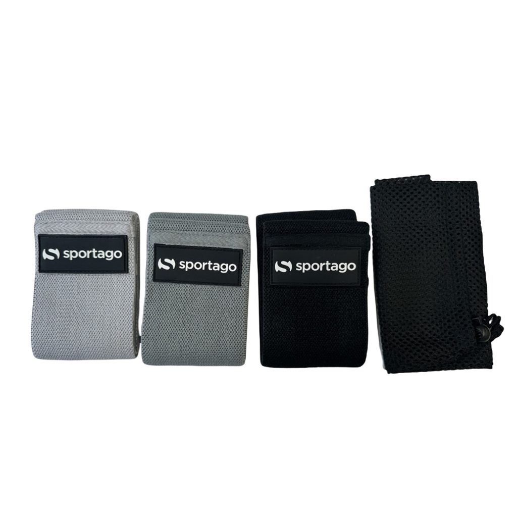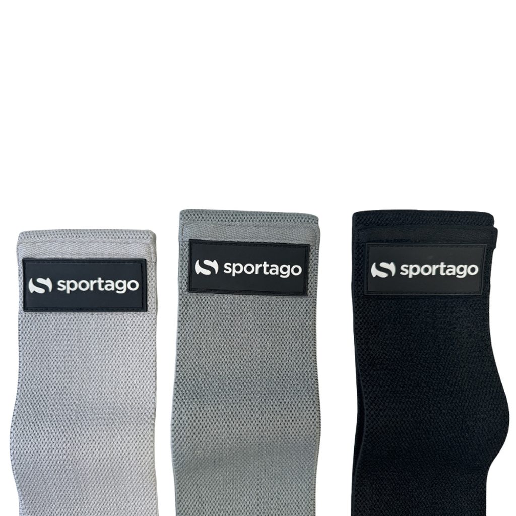 Sada troch odporových gúm Sportago Hip Band Set 3v1 z textilného materiálu s rôznou intenzitou odporu. Ideálne na posilnenie sedacích svalov, stehien a dolnej polovice tela. Nešmýkajú sa ani sa nerolujú. Súčasťou je praktický prepravný vak.