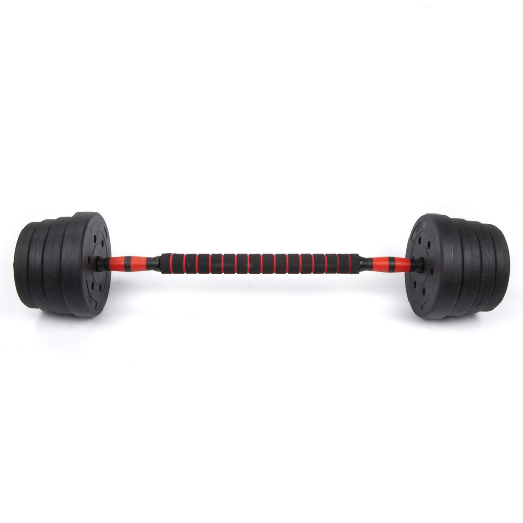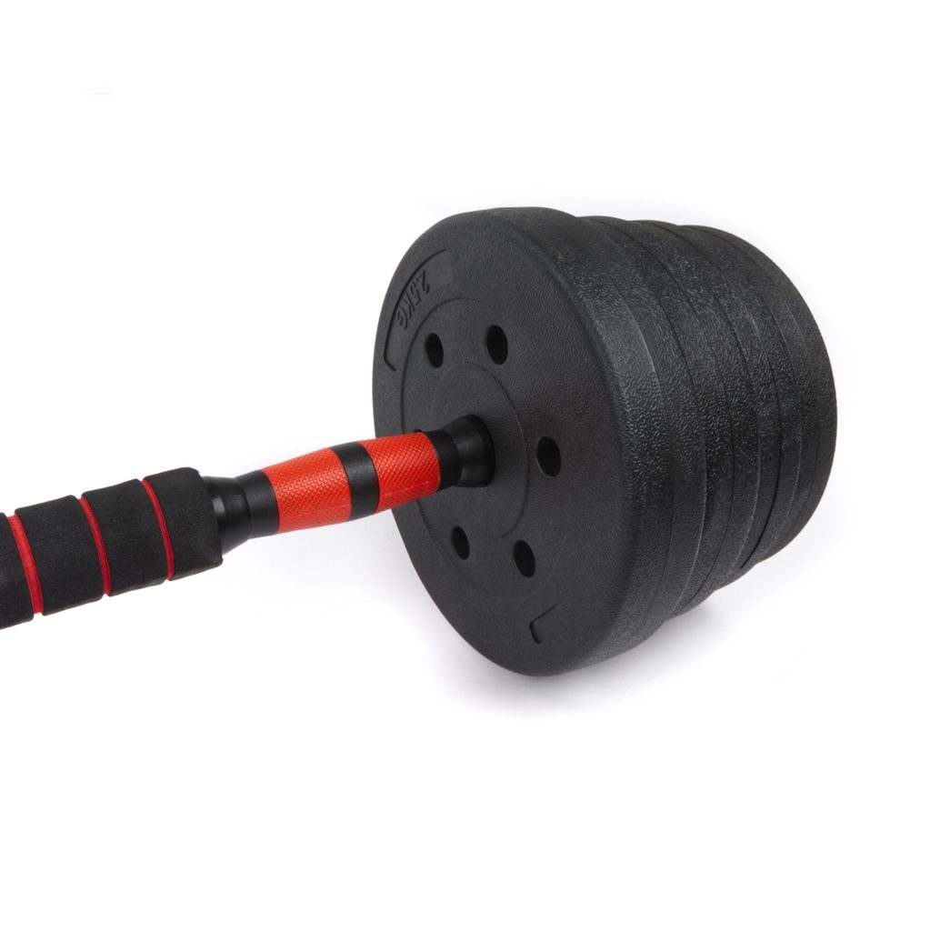 Jeden set, dve možnosti tréningu. Sportago prináša praktické riešenie pre domáce posilňovanie, ktoré nahradí celú sadu činiek. Vďaka spojovacej tyči ľahko premeníte dve jednoručky na jednu dlhú vzpieračskú tyč.