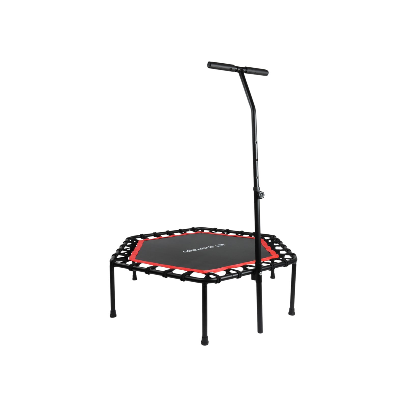 Sportago Whee je bezpružinová trampolína, ktorej odrazová plocha je upevnená pomocou gumolana, čo zabezpečuje plynulé doskoky s minimálnym hlukom. Konštrukcia z masívneho oceľového rámu s kvalitným výpletom z polypropylenovej tkaniny je ľahká, ale zároveň dostatočne odolná. Stabilitu zabezpečuje šesť nôh s protišmykovými krytkami, ktoré chránia podlahu a tlmia dopady. Výškovo nastaviteľné madlo poskytuje dodatočnú oporu pri cvičení a možno ho jednoducho odmontovaťť.